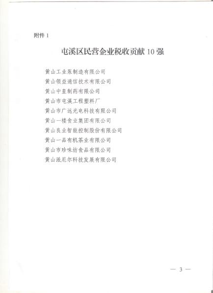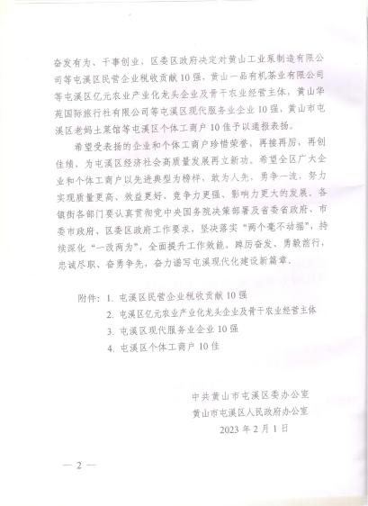 文章詳情2023年2月1日中共黃山市區(qū)委區(qū)政府公布了《關(guān)于表揚(yáng)屯溪區(qū)民營企業(yè)稅收貢獻(xiàn)10強(qiáng)、億元農(nóng)業(yè)產(chǎn)業(yè)化龍頭企業(yè)及骨干農(nóng)業(yè)經(jīng)營主體、現(xiàn)代代服務(wù)業(yè)企業(yè)10強(qiáng)、個(gè)體工商戶10佳的通報(bào)》(屯辦[2003]9號),我公司榮獲屯溪區(qū)民營企業(yè)稅收貢獻(xiàn)10強(qiáng)之一。