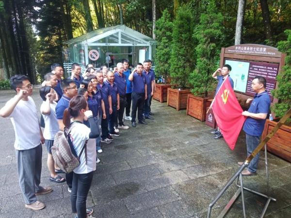 【黃山良業(yè)黨支部黨員在黃洋界保衛(wèi)戰(zhàn)勝利紀(jì)念碑合影】