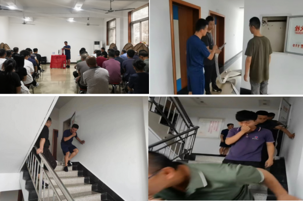 首先,汪隊長講解了滅火器、消防栓等消防器材的基礎(chǔ)知識、注意事項,并做了使用演示。接著,模擬公司辦公大樓出現(xiàn)火災(zāi)險情時的滅火處置和人員疏散演練。