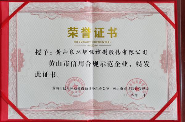 黃山良業(yè)智能控制股份有限公司獲黃山市信用合規(guī)企業(yè)榮譽(yù)證書(shū)