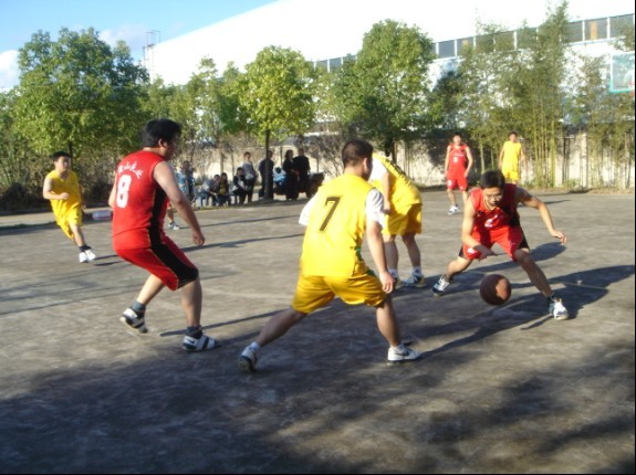 15:00時(shí),由鎮(zhèn)政府書記帶領(lǐng)的籃球隊(duì)員準(zhǔn)時(shí)來到良業(yè)公司的籃球場,15:30分在熱烈友好的氣氛中比賽開始了。