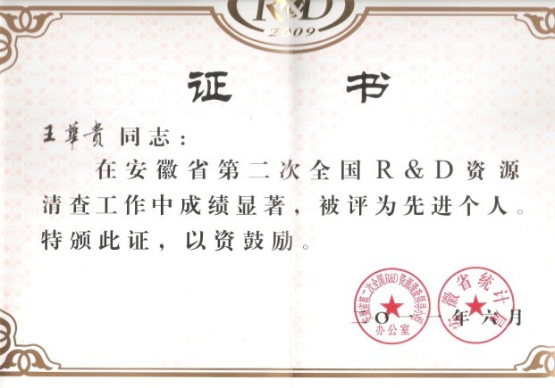 王華貴同志的扎實工作,得到了企業(yè)領導與統(tǒng)計工作主管領導部門的一致好評,2007年度曾被中國通用機械工業(yè)協(xié)會閥門分會評為優(yōu)秀統(tǒng)計員,2011年在安徽省第二次全國r&d資源清查工作中由于表現(xiàn)突出,成績顯著,被該項清查小組和安徽省統(tǒng)計局評為“先進個人”稱號。