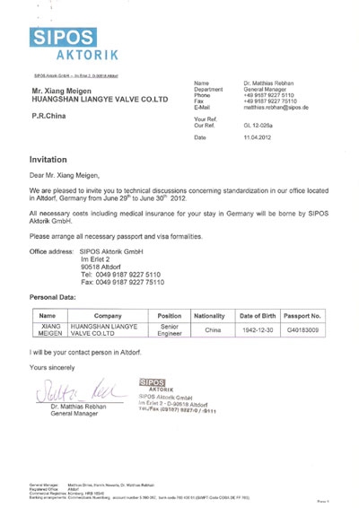 【導讀】黃山良業(yè)閥門有限公司董事長項美根應邀出席德國柏林召開的國際閥門標準化會議,目前已收到din標準化組織發(fā)來的邀請函(valvesstandardscommittee)。黃山良業(yè)閥門有限公司是國內(nèi)著名的閥門電動裝置生產(chǎn)企業(yè),由我國第…